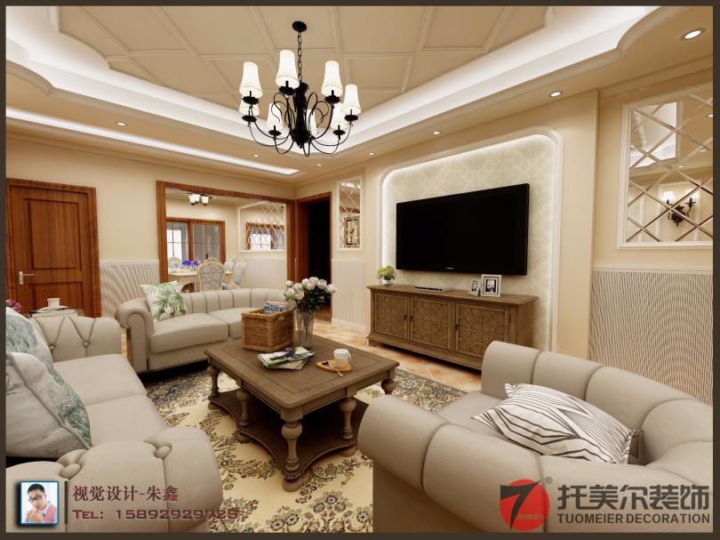 案例說明: 業主年齡在40歲左右,要穩重的設計,但是又不要顏色太深沉,所以大廳電視背景墻做了兩個方案。 |