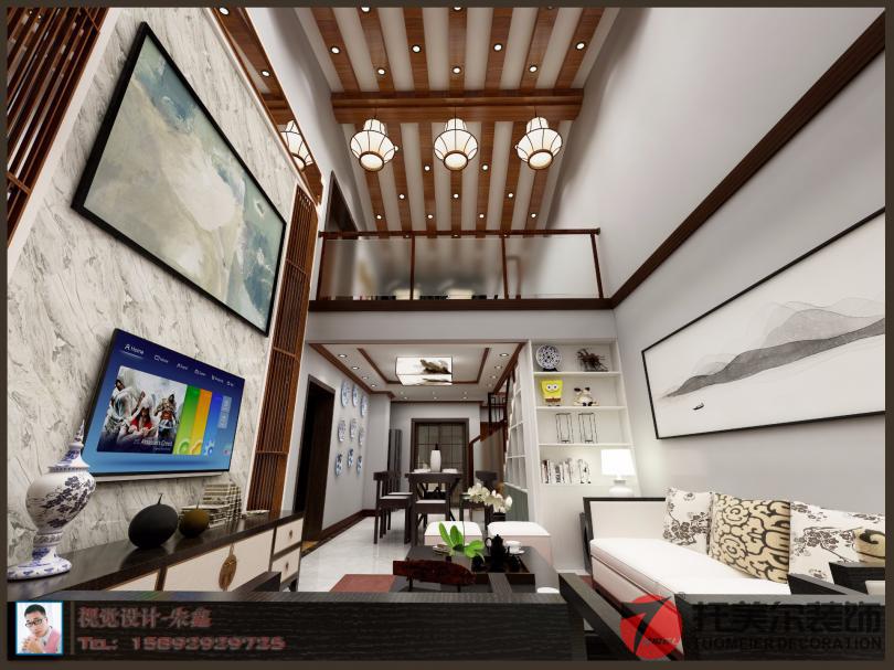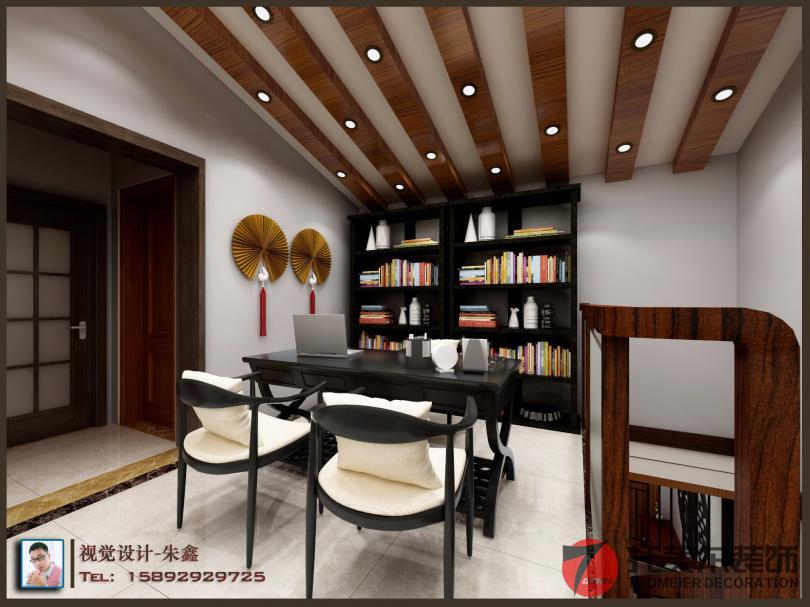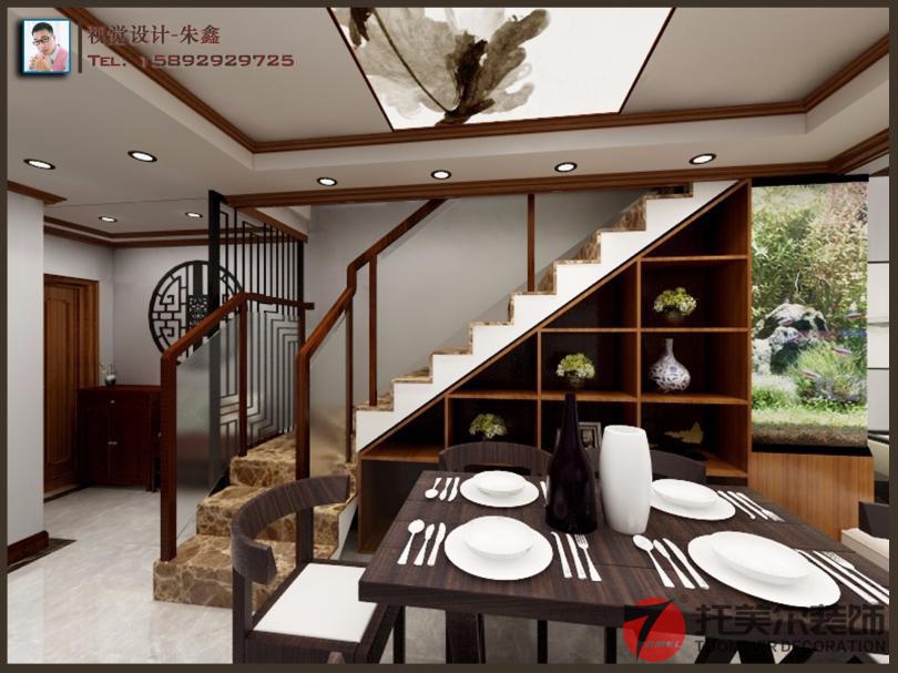 案例說明: 業(yè)主特別喜歡中式元素,這個戶型是個小戶型,樓梯的設(shè)計特別重要,一個是要合理利用空間,二又不要影響美觀。 |