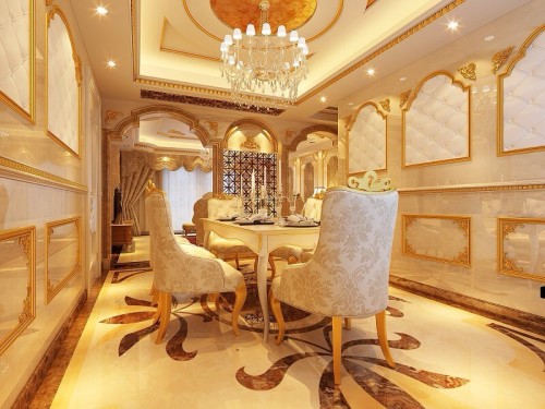 這類風格的家具與裝飾,主要采用花樣繁多的裝飾,作大面積的雕刻、金箔貼面、描金涂漆處理,坐臥類家具大量應用面料包覆,華麗的布面與精致的雕刻互相配合。