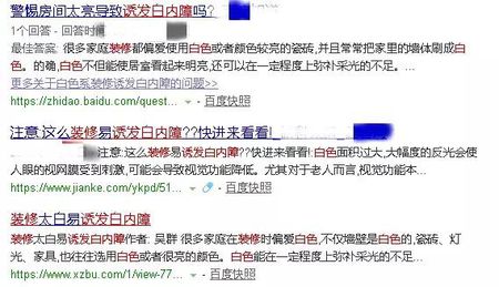 最近網上有傳言說白色系裝修,由于白色面積過大,大幅度的反光造成光污染,使人眼的視網膜受到刺激,引起眼睛疲勞,甚至會增加白內障的發病風險。