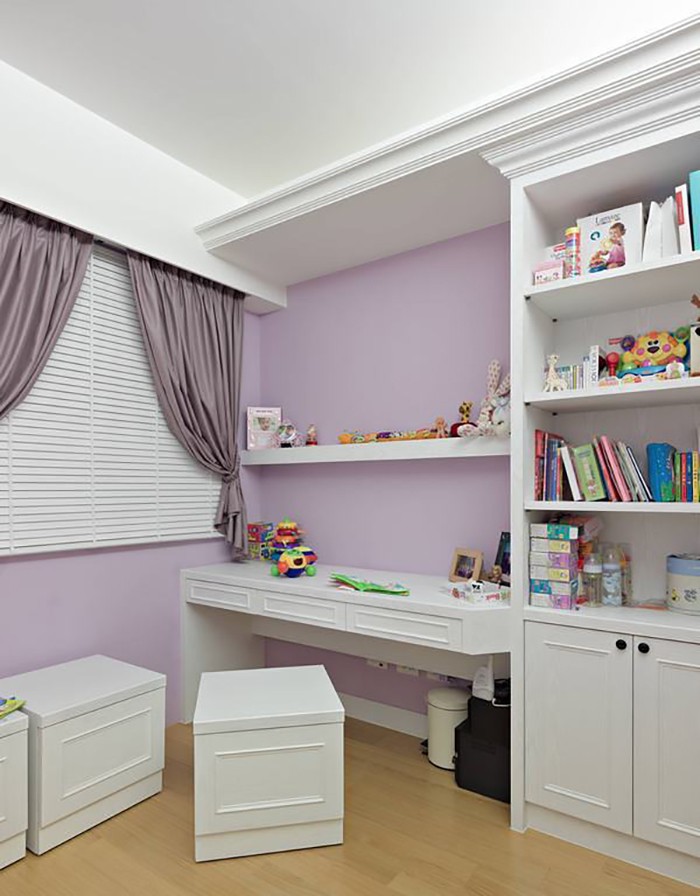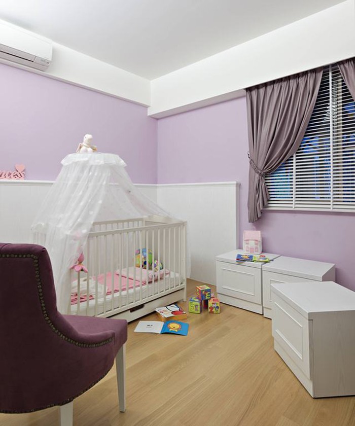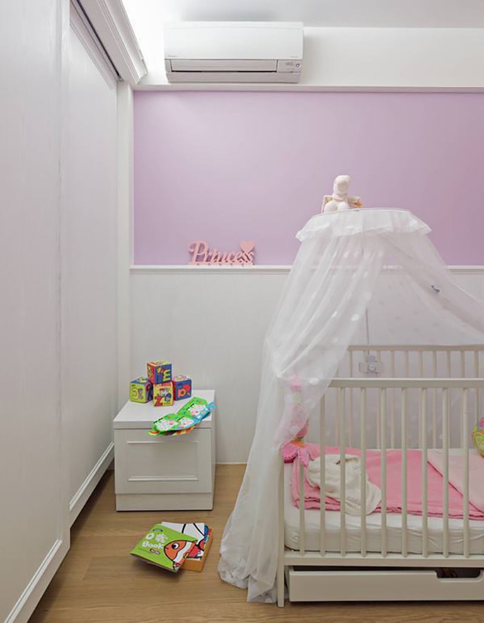不同于主臥的完整設(shè)定,粉紫顏色房則著重未來彈性。